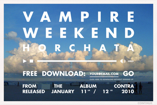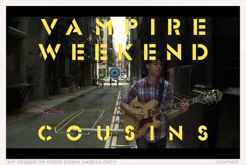 I’ve been trying out this experimentation on the Vampire Weekend website. As a bit of background, Vampire Weekend have a new album out at the start of January so over the last few months we’ve had a series of different bits of content we’ve wanted to roll out. Now, the site always has had a news section (and in fact we haven’t really touched the rest of the site) but it didn’t feel like that was really ‘enough’, and a bit of excitement and design was in order.